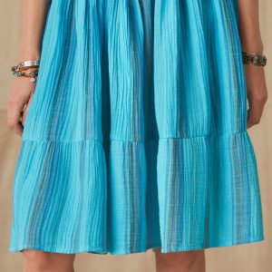A go-to. everyday dress in stretchy double gauze with notch V-neck. waist tie and pockets. Sleeveless. in beautiful. overdyed yarn dyed hues. Cotton. Machine wash. Imported. Exclusive. Sizes XS (0 to 2). S (4 to 6). M (8 to 10). L (12 to 14). XL (16 to 18). XXL (20 to 22). Approx. 43L.