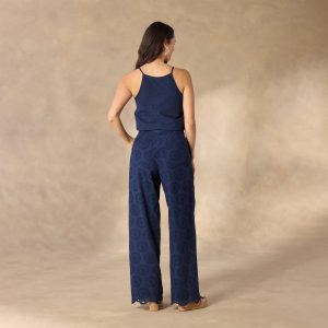 Sporty and feminine. our cotton gauze. eyelet pants are loose and flowing. with wide-leg silhouette. scalloped hem. side seam pockets and back patch pockets. Fully lined. with button closure zip fly and tie at waistline. Machine wash. Imported. Exclusive. Sizes 2?C16. 29.5 inseam