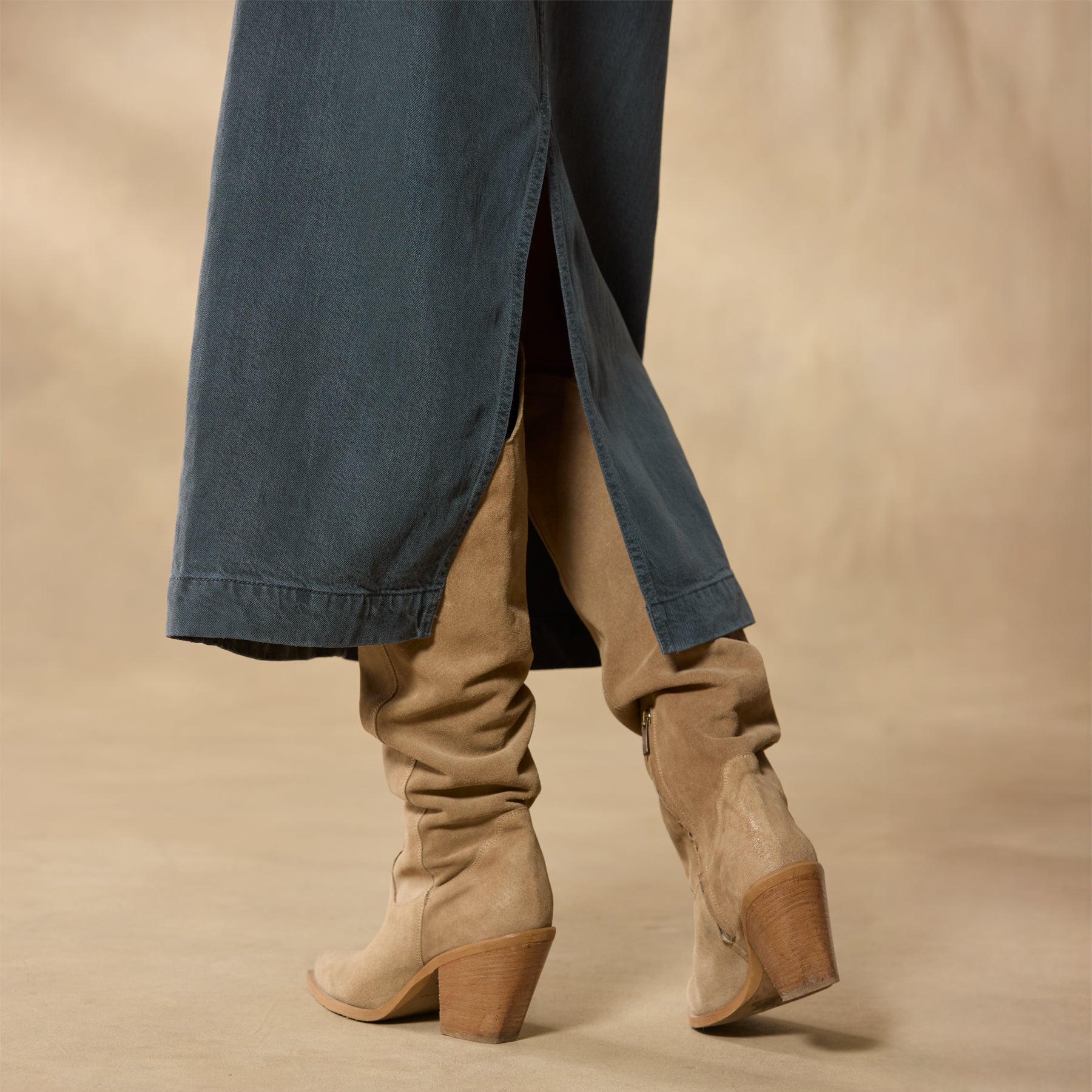 An instant everyday staple. our Bosque Skirt features an ultra-wearable midi length with a button fly. front patch pockets and a back slit. Tencel/linen/cotton. Machine wash. Imported. Exclusive. Sizes 24?C32. Approx. 30l.
