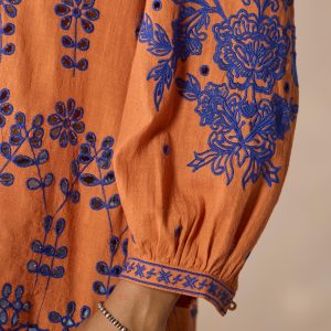 Stunning allover embroidery adds wonder and beauty to our vibrant notch neckline top graced with ladder lace insets. eyelet details and ruffles at the neckline. Bracelet length sleeves. Camisole sold separately. Cotton. Machine wash. Imported. Exclusive. Sizes XXS (00). XS (0–2). S (4–6). M (8–10). L (12–14). XL (16–18). Approx. 24l.