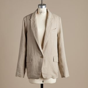 Easy. comfortable blazer with one faux horn button closure. Lined in a vintage floral print. Center vent. Linen. Machine wash. Imported. Exclusive. Sizes XS (0 to 2). S (4 to 6). M (8 to 10). L (12 to 14). XL (16 to 18). XXL (20 to 22). Approx. 28.5l.