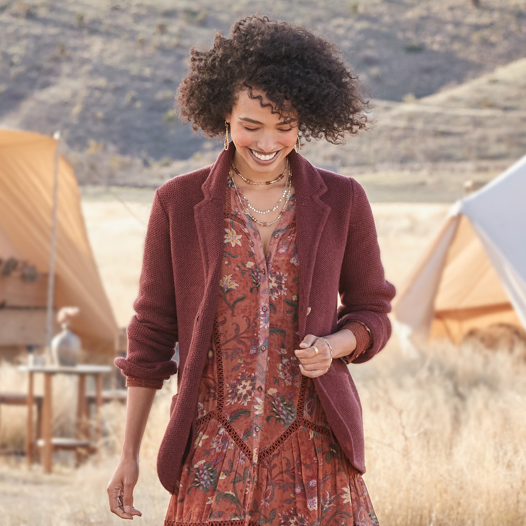A new classic. our honeycomb stitch sweater blazer. Delightfully textural. with lapel collar. tubular details at cuffs and hem. faux horn buttons. two front pockets. Three-button cuffs. Cotton/nylon/wool. Hand wash. Imported. Exclusive. Sizes XXS (00). XS (0–2). S (4–6). M (8–10). L (12–14). XL (16–18). Approx. 25.5l.
