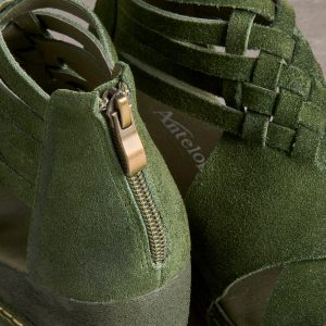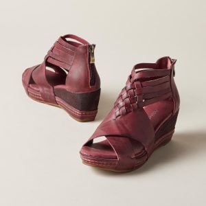Eye-catching curves and all-day comfort are a winning combination in these woven. pebbled leather sandals with back zippers and extra-thick. cushioned insoles. Imported. Euro whole sizes 36-41. 36 (US 5). 37 (US 6). 38 (US 7). 39 (US 8). 40 (US 9). 41 (US 10). 2 wedge.